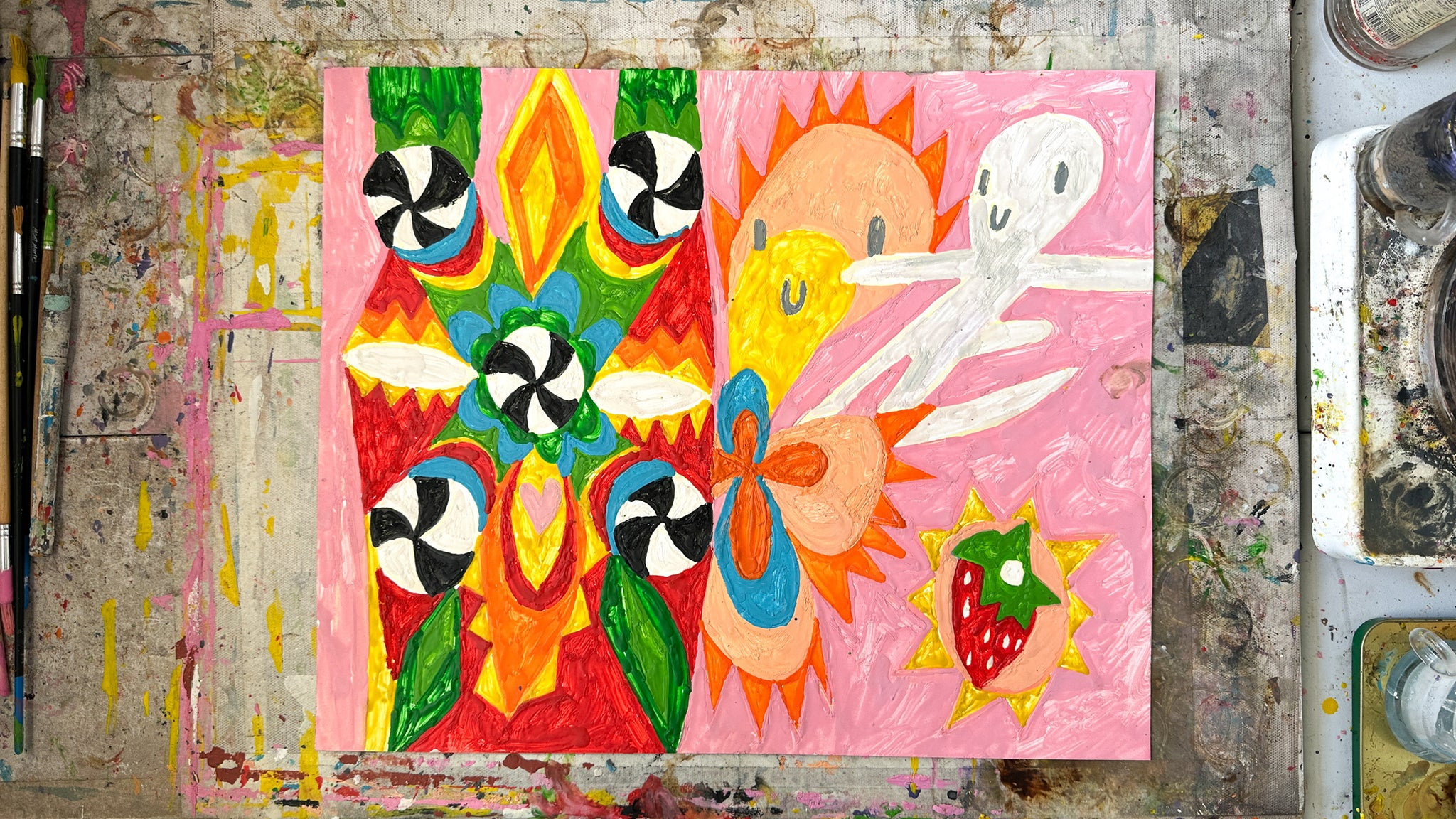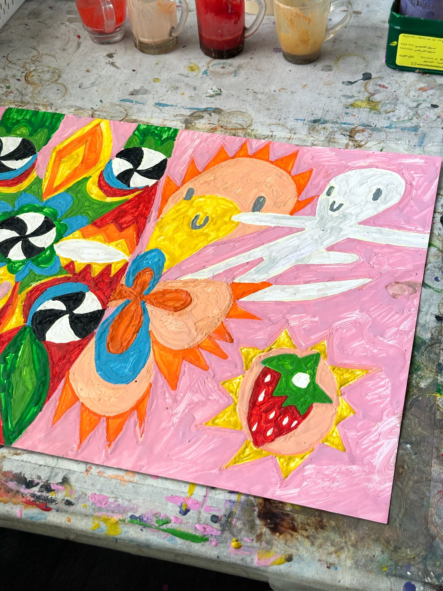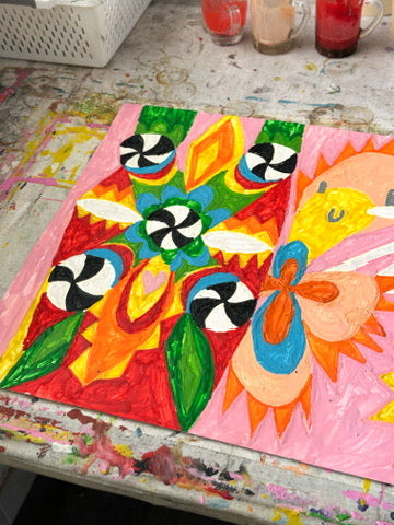 Melted crayon on paper in artist's frame