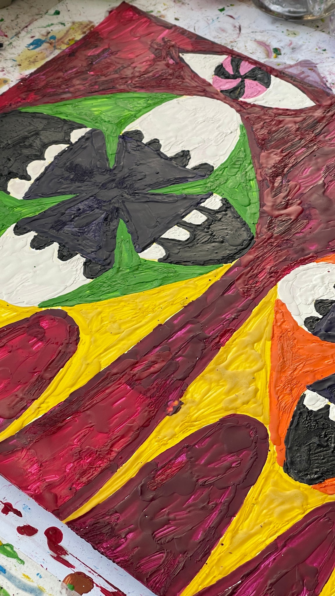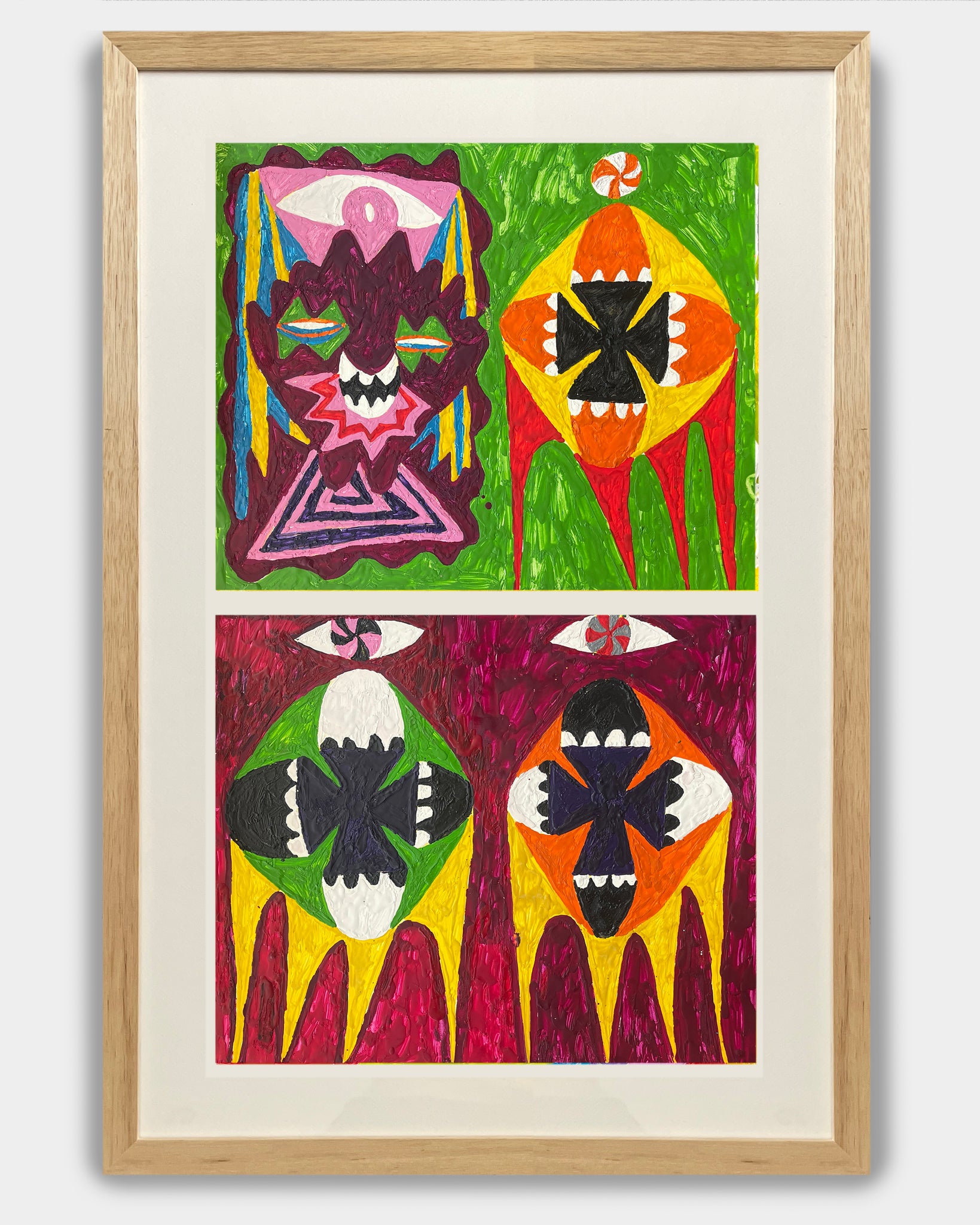 2 Melted crayon on paper in artist's frame