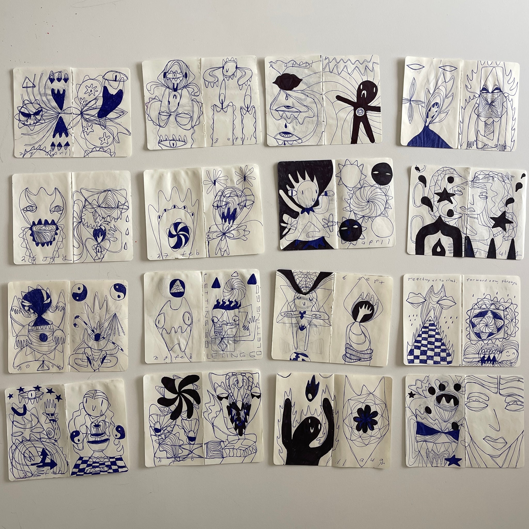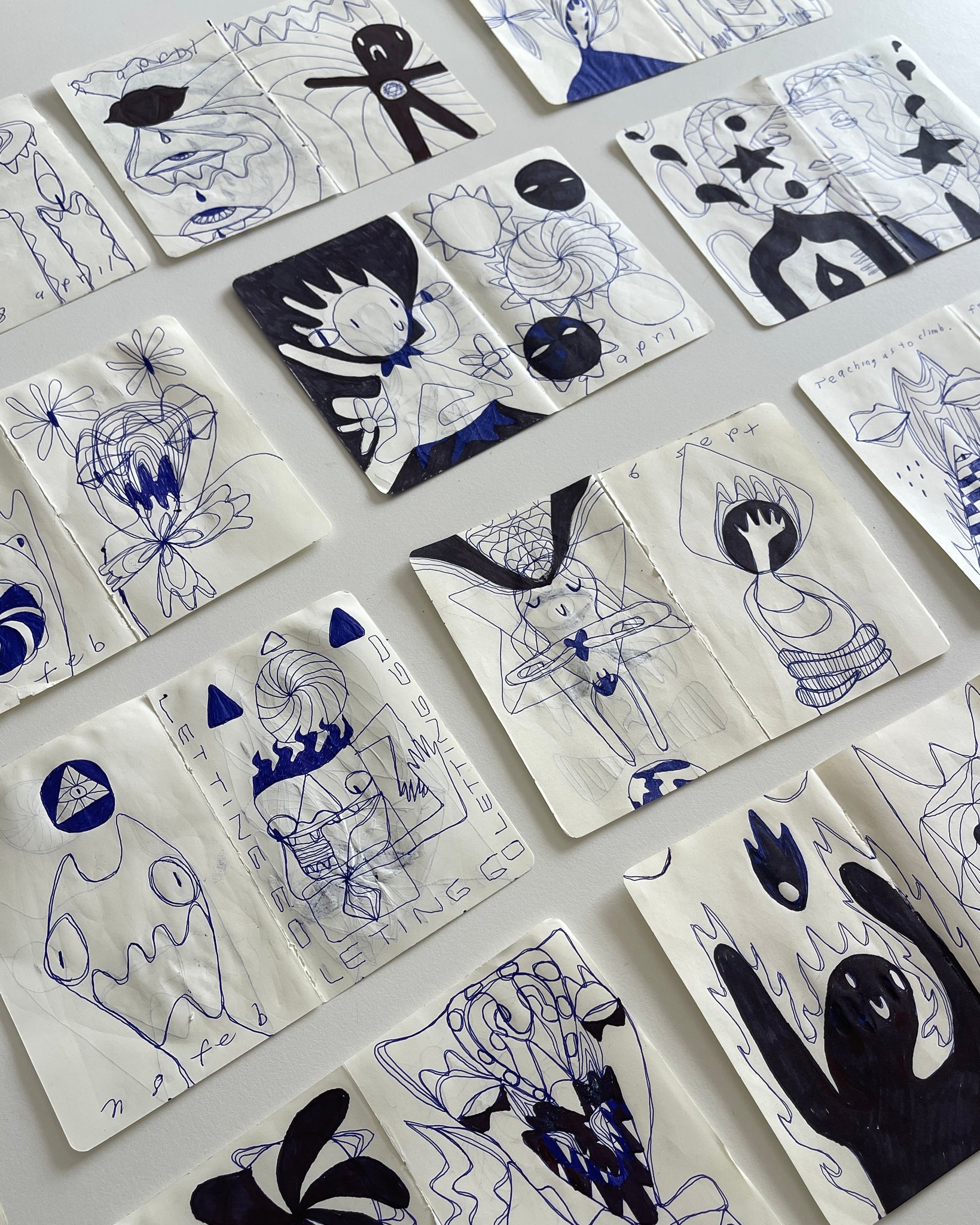 Hand-drawn ink on paper sketch ripped from book.
